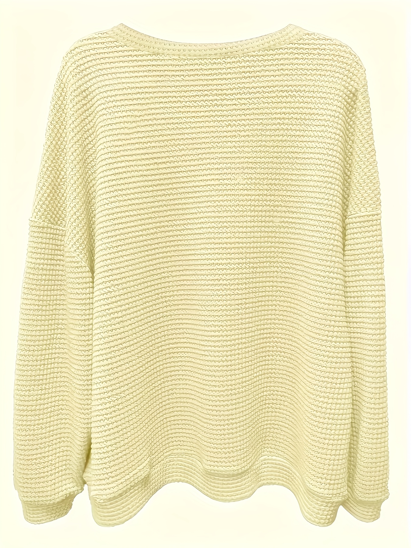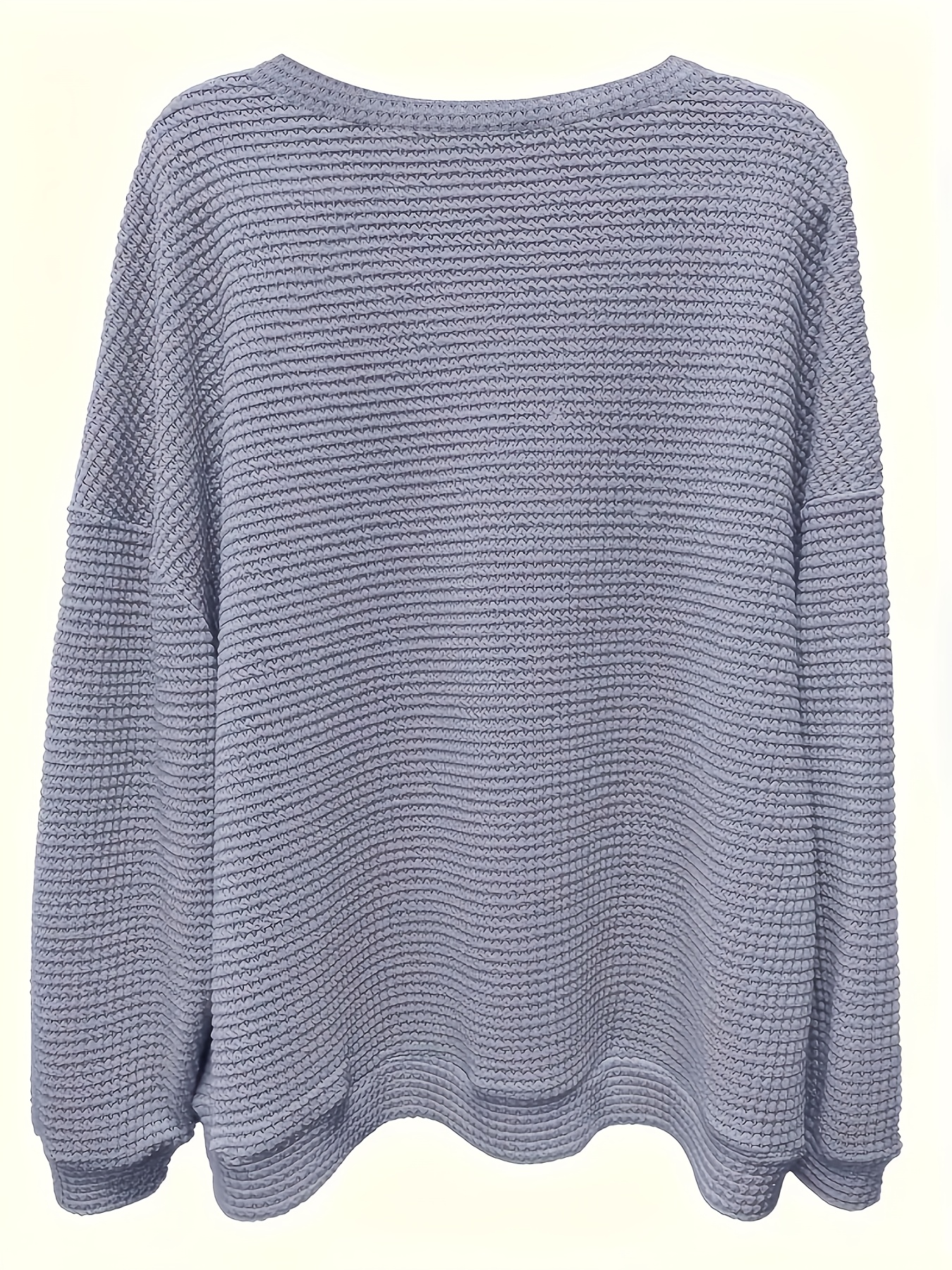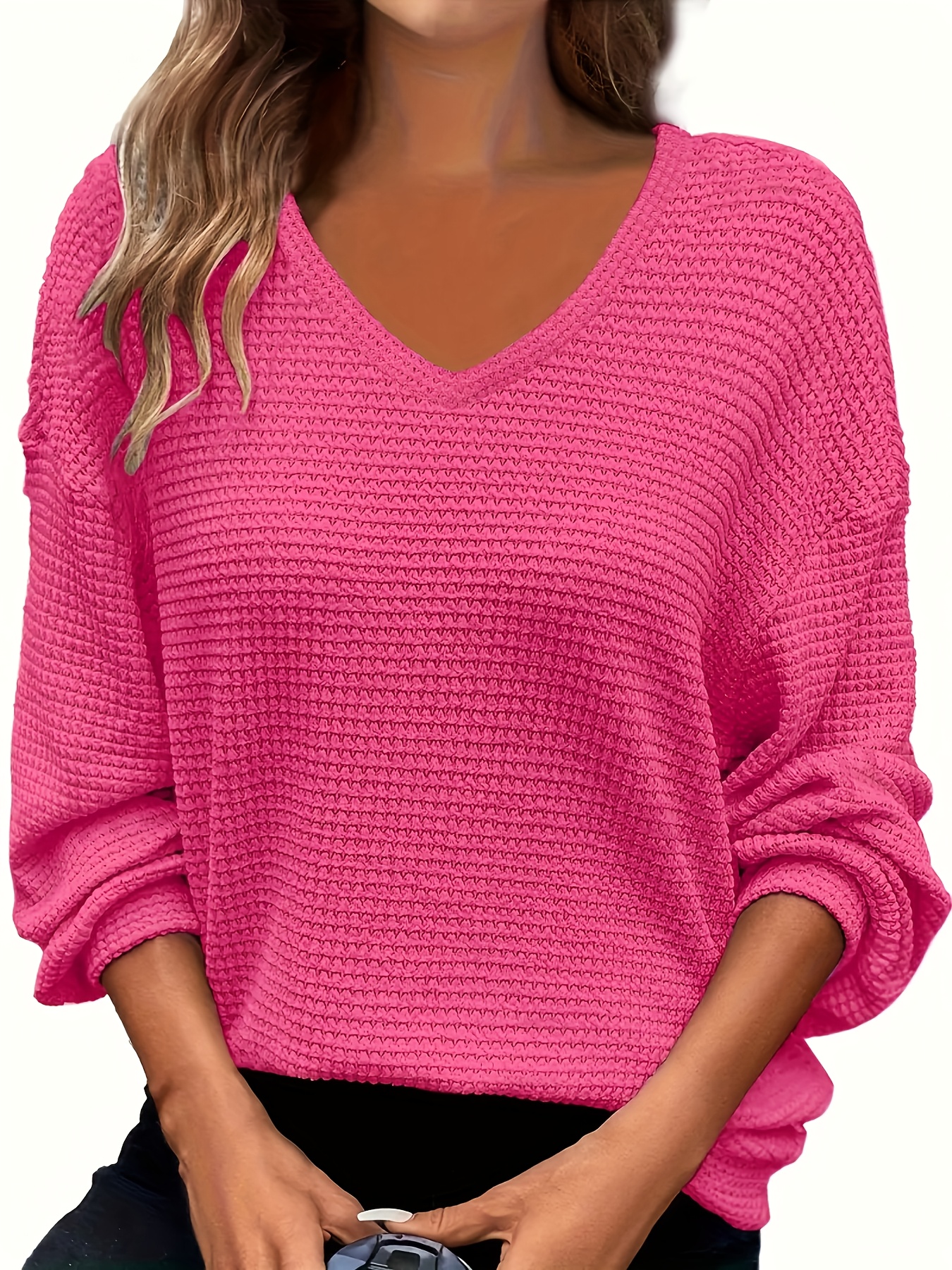 Plus Size - Plus Size V-Neck Pullover Sweatshirt - Soft Stretchy Casual Elegant Long Sleeve Top, Solid Color Spring/Fall Layering Essential for Women & Men, Comfortable Casual Attire, Relaxed Fit, Medium Elasticity