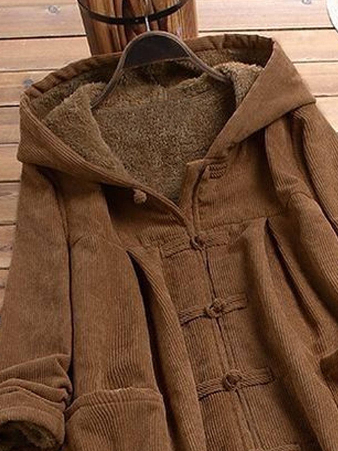 Women'S Elegant Fleece-Lined Mid-Length Coat - Loose Fit Long Sleeve with Button Front, Solid Color Brown, Perfect for Fall/Winter, Cozy Outerwear | Buttondown Coat | Placket Closure