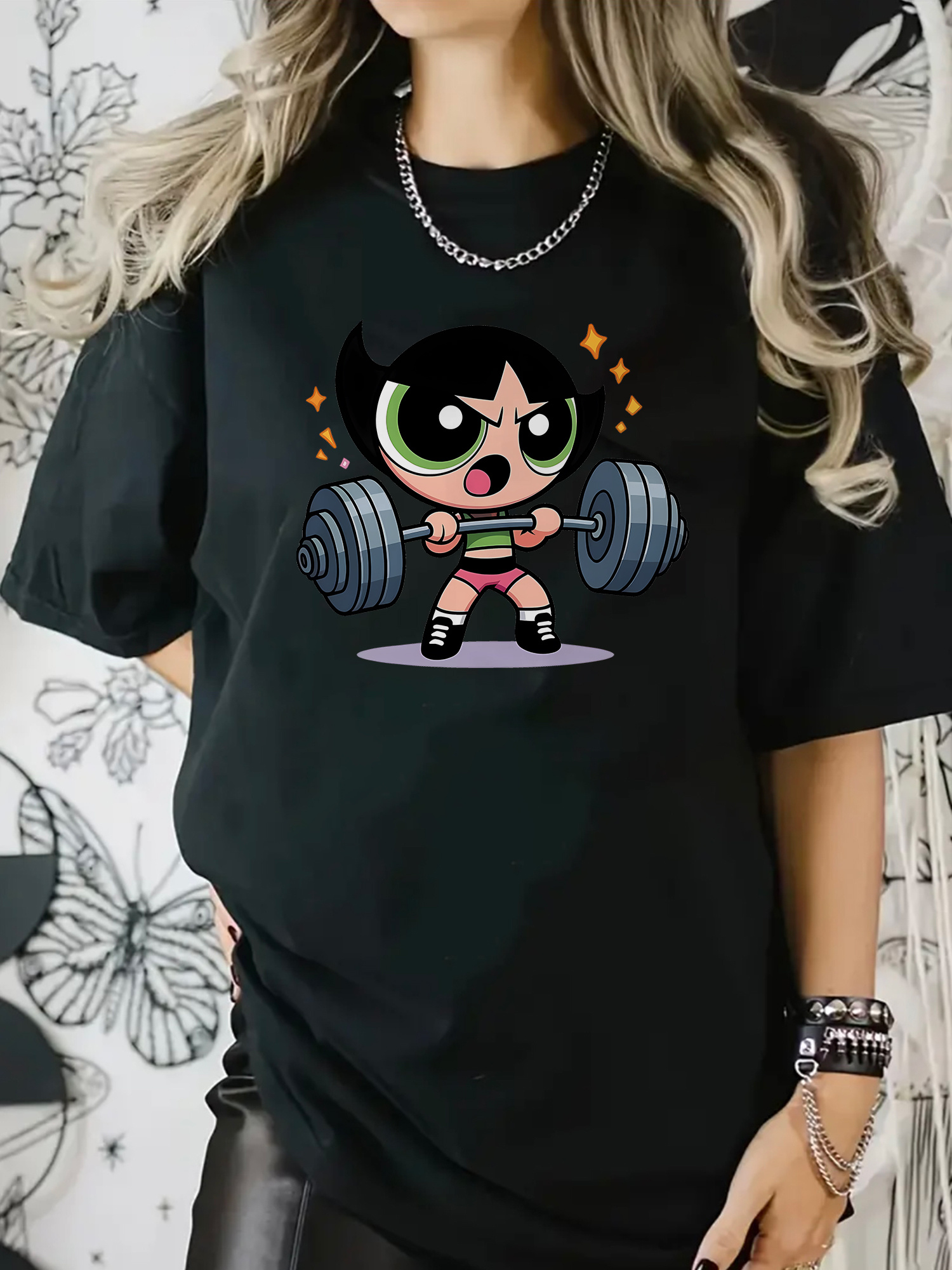[Graphic Weightlifting Tee] Soft Stretchy Women's Graphic T-Shirt | Bold Weightlifting Design, All-Season Casual Shirt for Gym, Everyday & Party Wear - Machine Washable, Comfortable Fit, Breathable Material, Short Sleeve Tee