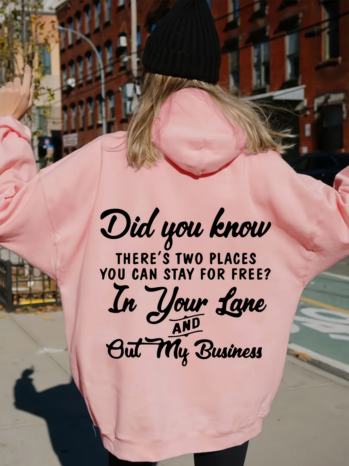 Women'S Casual Hoodie with Alphabet Print, Polyester 100% Knit Fabric, Slight Stretch, Fall/Winter Pullover with Pocket Detail, 220g/m² Weight