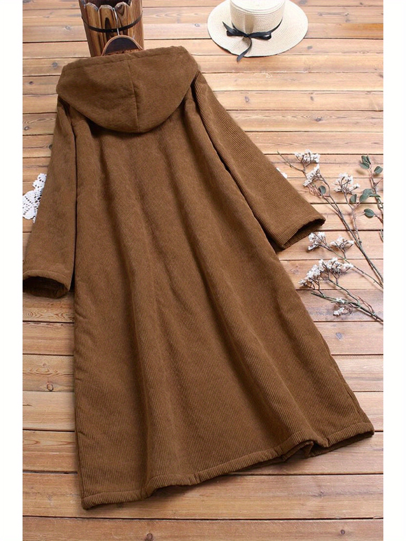 Women'S Elegant Fleece-Lined Mid-Length Coat - Loose Fit Long Sleeve with Button Front, Solid Color Brown, Perfect for Fall/Winter, Cozy Outerwear | Buttondown Coat | Placket Closure