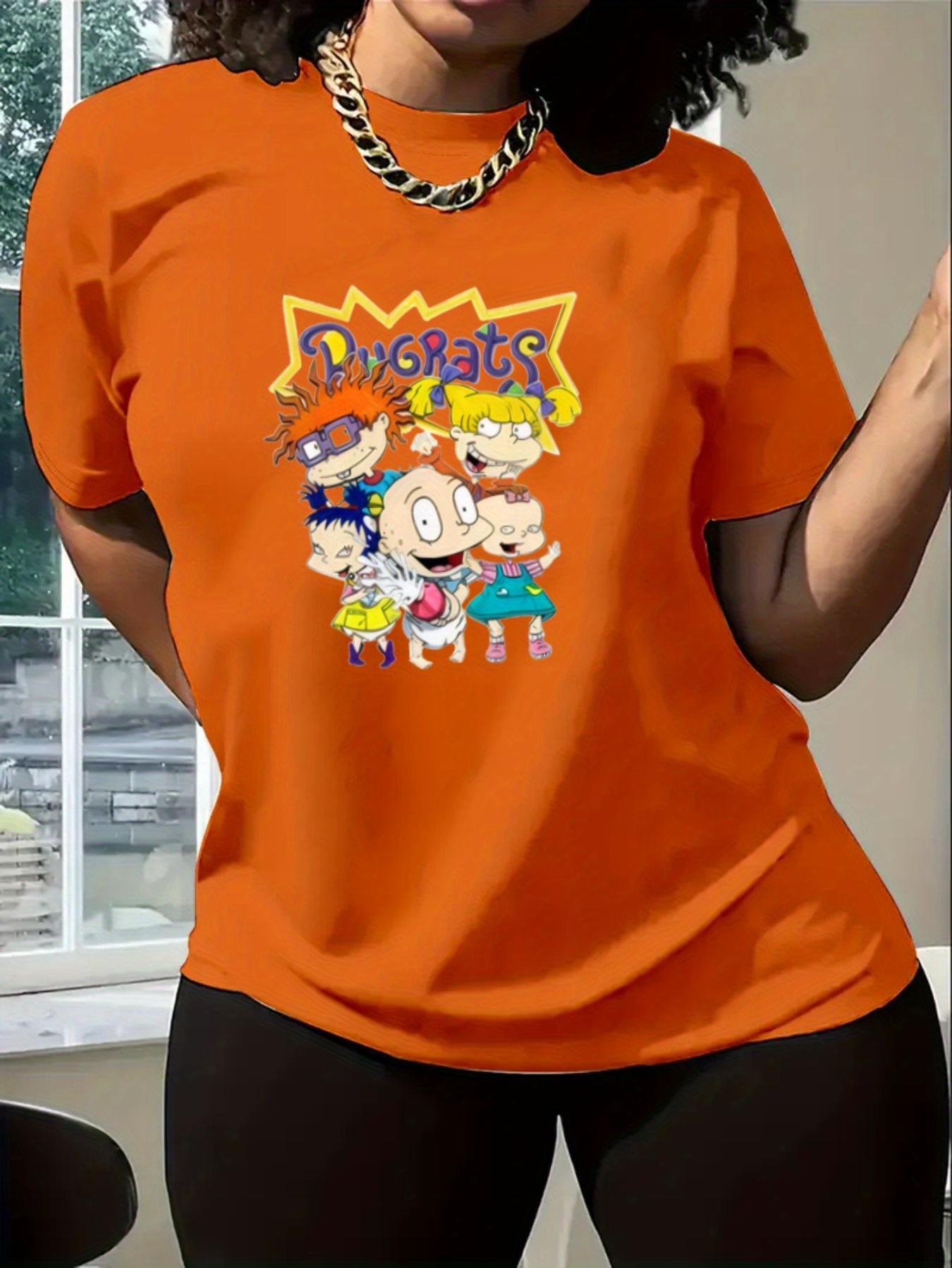 Women'S "The Rugrats" Graphic T-Shirt - Casual Crew Neck, Breathable Short Sleeve Top with Colorful Cartoon Characters, Comfortable Running Shirt for Spring/Summer, Summer Apparel | Crew Neck Shirt | Stretchy Fabric, Ladies T Shirts