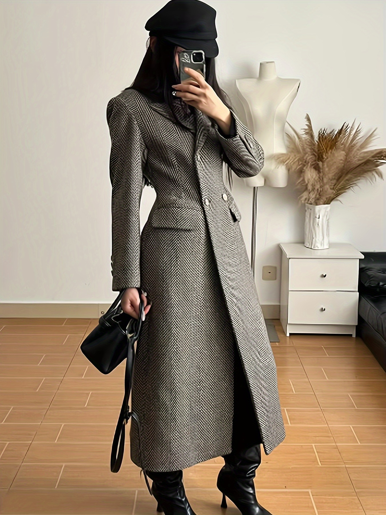 [Double Row Button Windbreaker Jacket] Temperament Double Row Button Long Windbreaker Jacket
