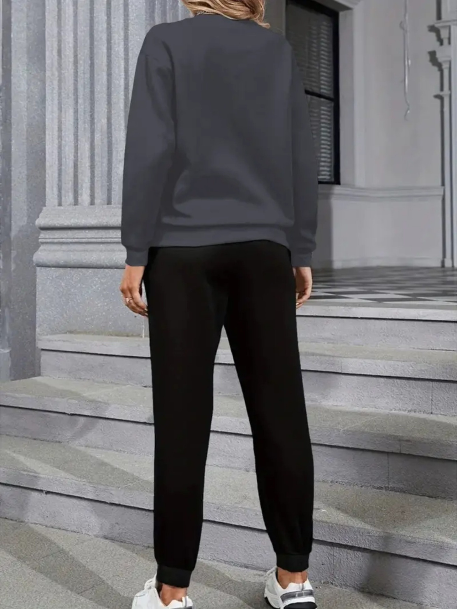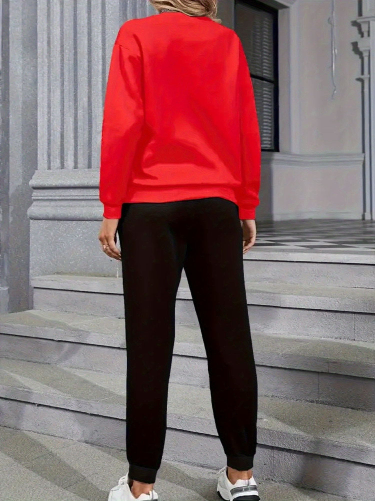 Women'S Casual Sports Fashion Bear Basketball Pattern Crew Neck Sweatshirt Set with Knit Fabric, 100% Polyester Material, Fall/Winter Season, Slight Stretch Fabric, Solid Color Pants - Athletic Loungewear Outfits