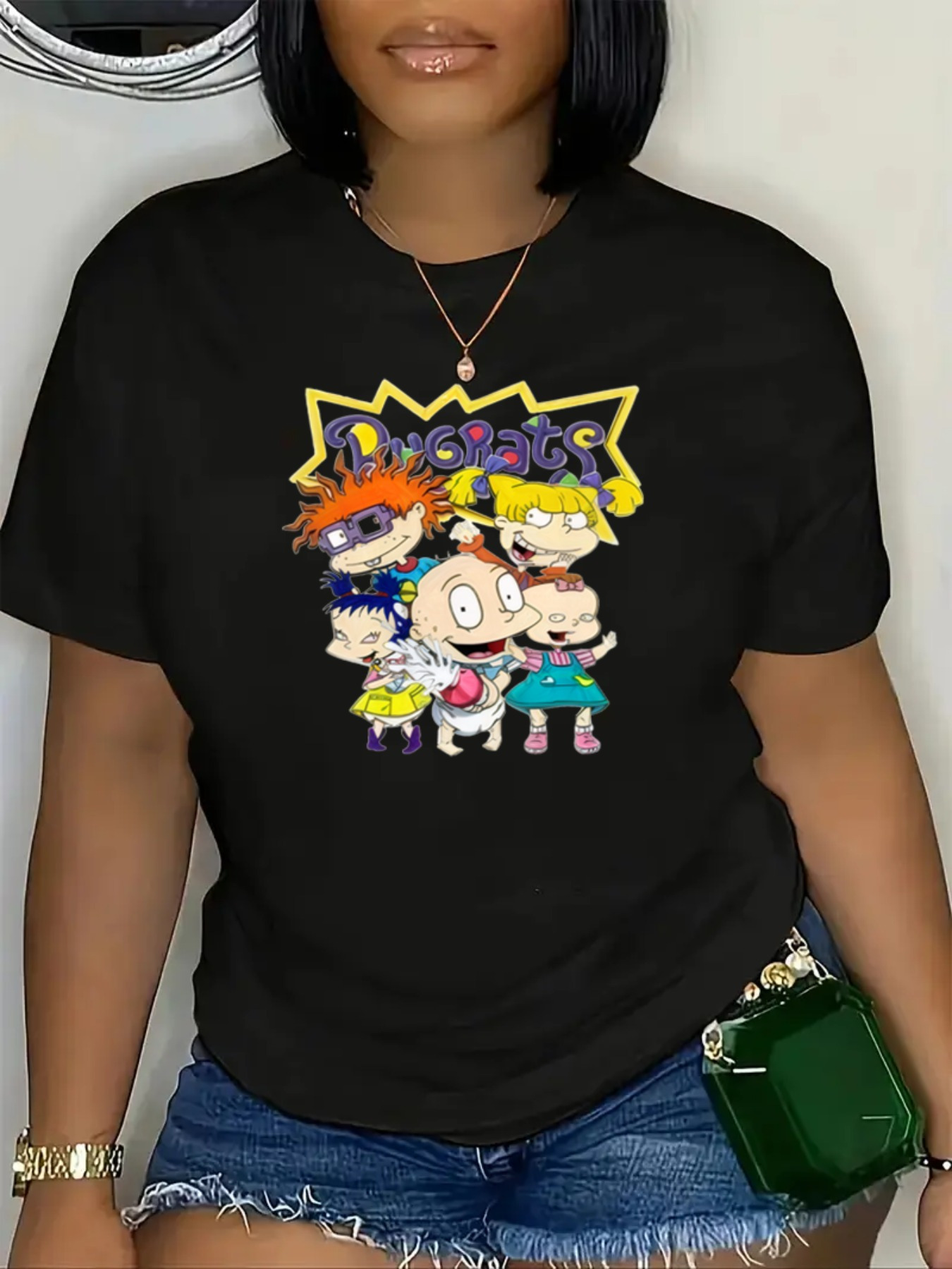 Women'S "The Rugrats" Graphic T-Shirt - Casual Crew Neck, Breathable Short Sleeve Top with Colorful Cartoon Characters, Comfortable Running Shirt for Spring/Summer, Summer Apparel | Crew Neck Shirt | Stretchy Fabric, Ladies T Shirts