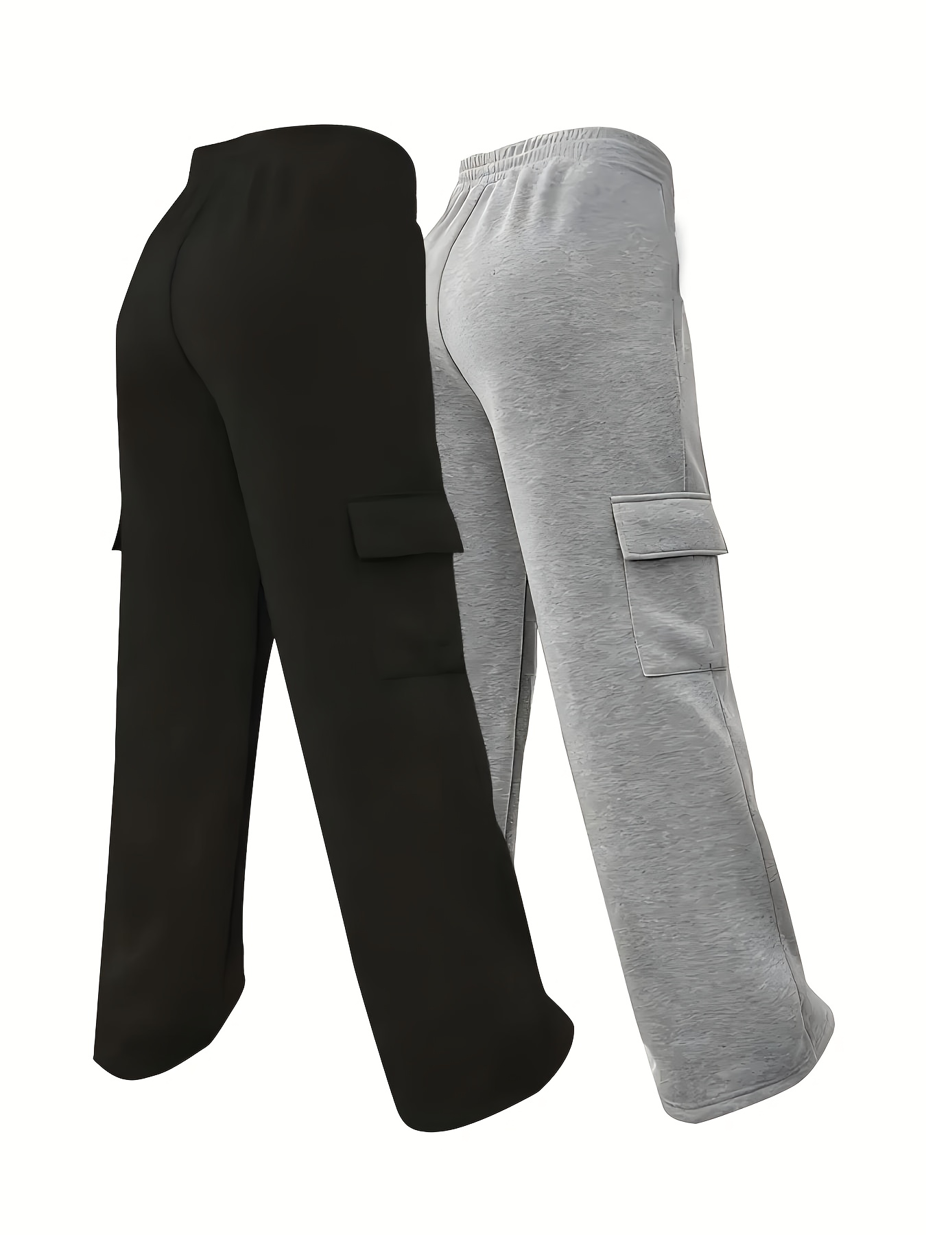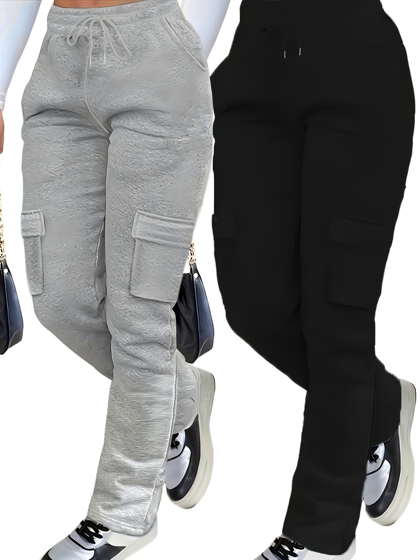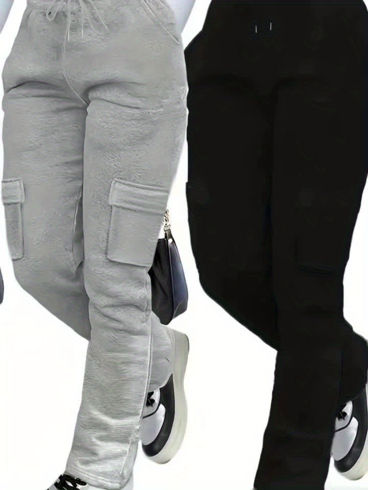 2pcs Women'S Casual Jogger Pants with Pockets - Soft Fleece-Lined, Elastic Waistband, Drawstring, Loose Fit, Solid Color (Black & Gray), Perfect for All Seasons, Comfortable Clothing | Relaxed Fit Pants | Soft Fleece Lining, Jogging Pants